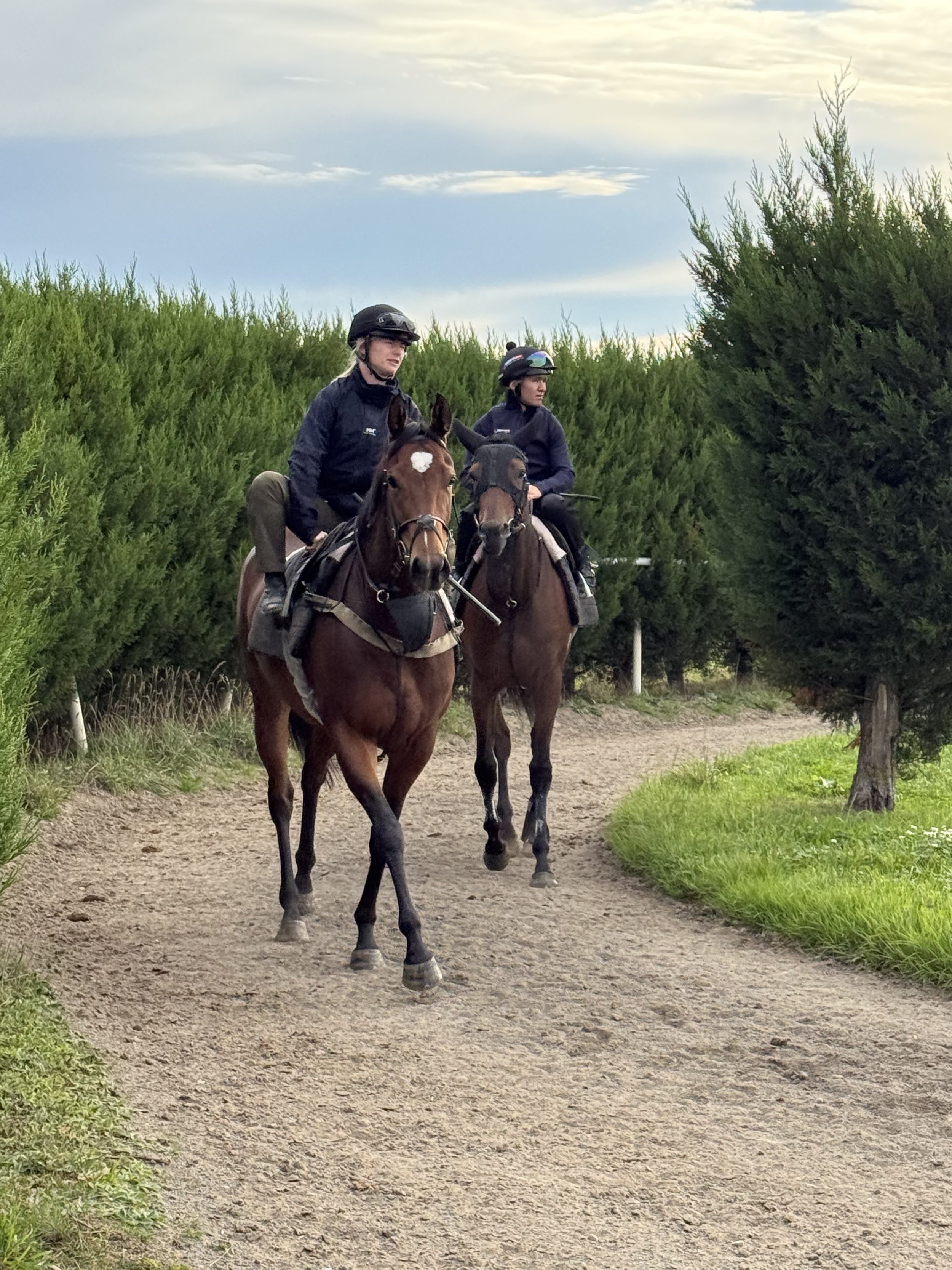 Next, it was time to head out to the gallops. The group was greeted with friendly smiles as the morning exercise got underway. Owners were able to watch the horses warming up around the round gallop before making their way up the main stretch, showing their progress and enthusiasm.
