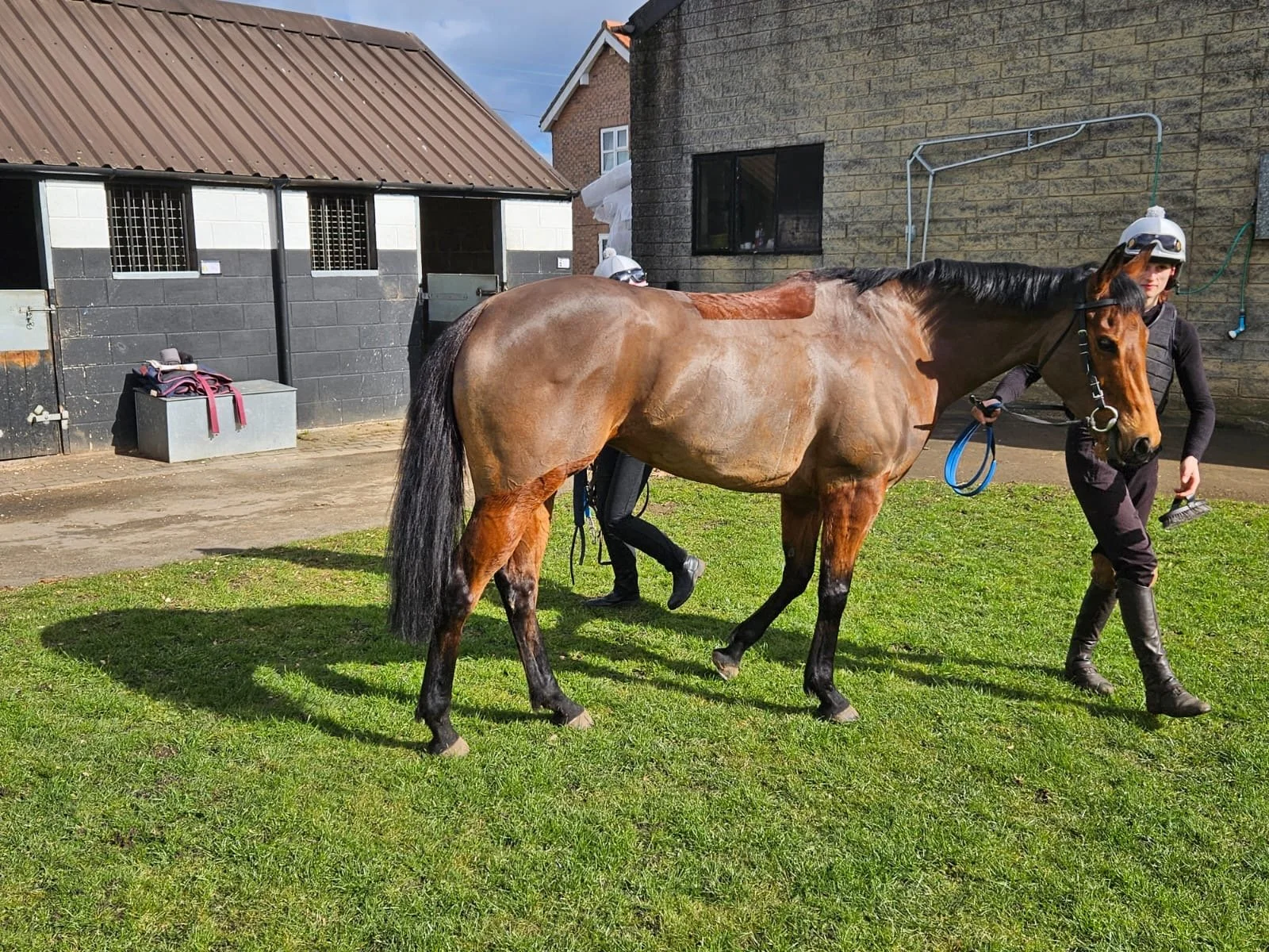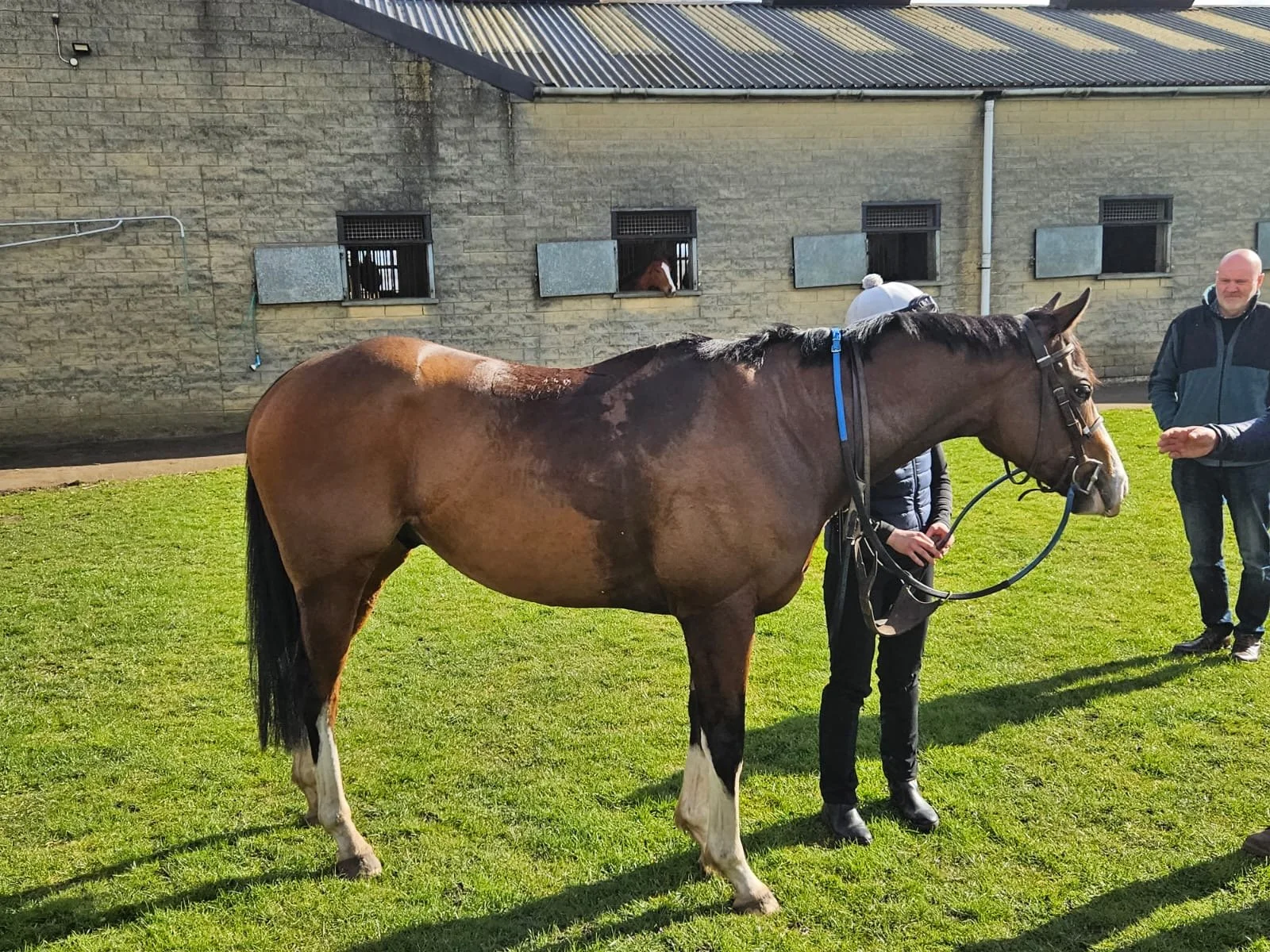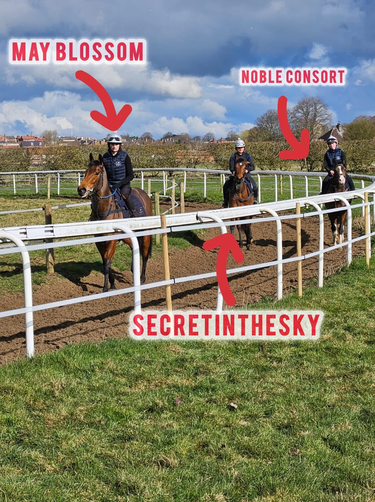 Members of Ursa Major gathered today at Julie Camacho’s Star Cottage Stables in Malton to see their horses—Noble Consort, May Blossom, and the two-year-old Secretinthesky—as they commence training for the forthcoming flat racing season. The visit provided owners with an opportunity to engage firsthand with the horses and gain insights into their training regimens.