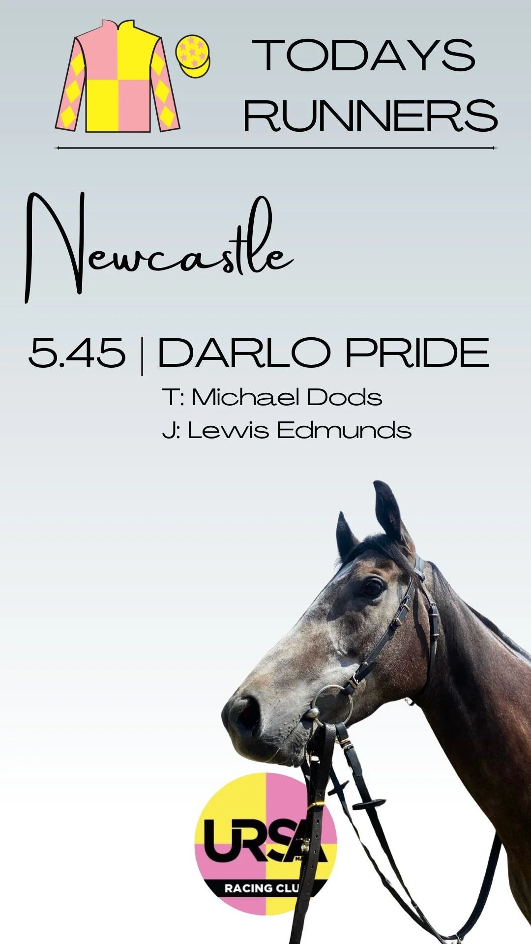 Today we have Darlo Pride running at Newcastle- Darlo was going for the top prize in the all-weather bonus scheme but this year has been anything but kind to Darlo owners- He was very unlucky in running in Janurary, we were unlucky not to pick up more points then with a little niggle after 1 run in Feburary, as much as everyone had eyes on the bonus. The horse always comes first! - A few weeks off with light training and medication see’s Darlo back today, with an unfavourable draw- luck will have to be on his side but he tries his heart out. In many eyes he has already reached ‘URSA LEGEND’ status - so whatever the outcome today. He has done us proud! Good luck and home safe!